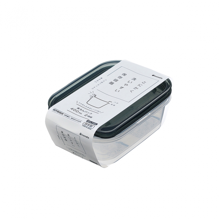 83457 INOMATA 1834 角型保鮮盒 400ml(2入)-黑