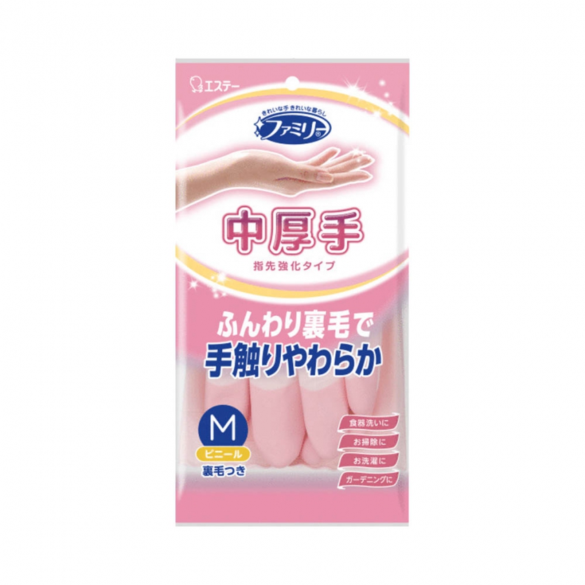 12113 ST雞仔牌 乳膠強化指尖家事手套 (加絨型)M-粉