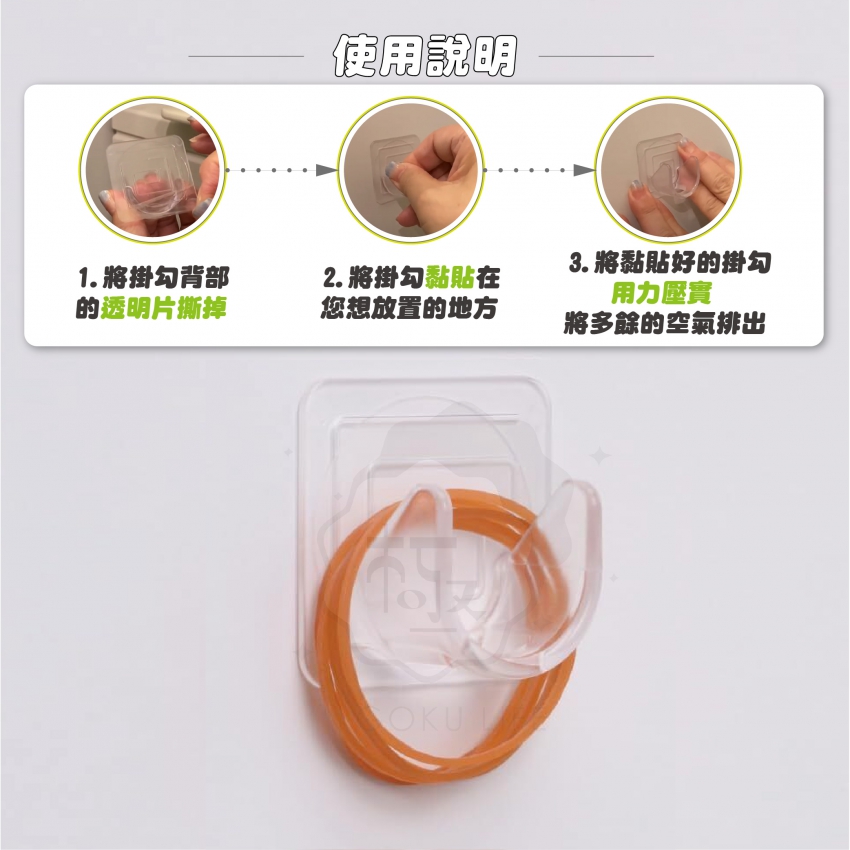 ⚪透明掛勾設計,黏在壁面不顯眼。