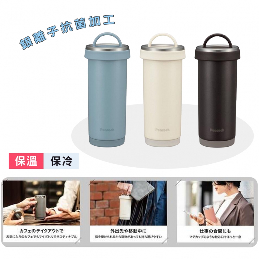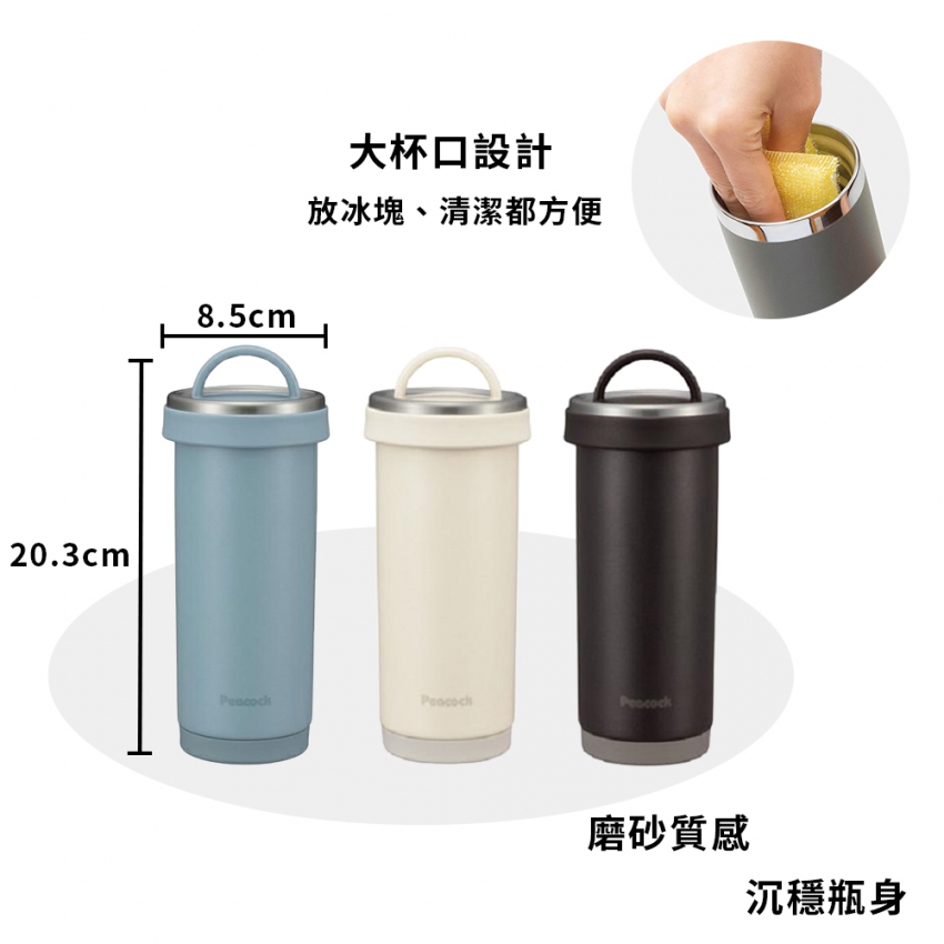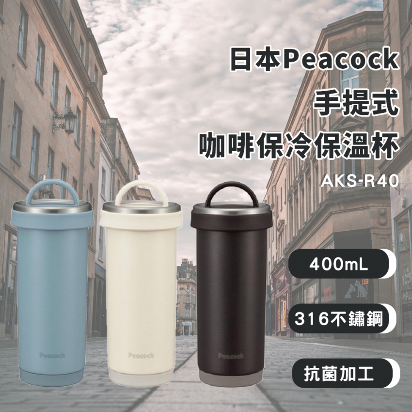 34176 Peacock AKS-R40 手提式咖啡保冷保溫杯400ML-米白